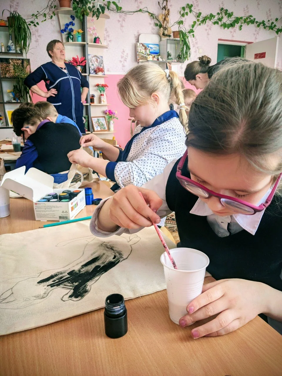После обсуждения дети перешли к творческой части мероприятия, где каждый смог выбрать понравившееся изображение для росписи шоппера, а некоторые решили создать свои уникальные сюжеты. С большим увлечением и интересом ребята рисовали на ткани, подбирали краски и обменивались идеями. В атмосфере творчества и радости каждый ребёнок смог создать уникальный аксессуар для себя.